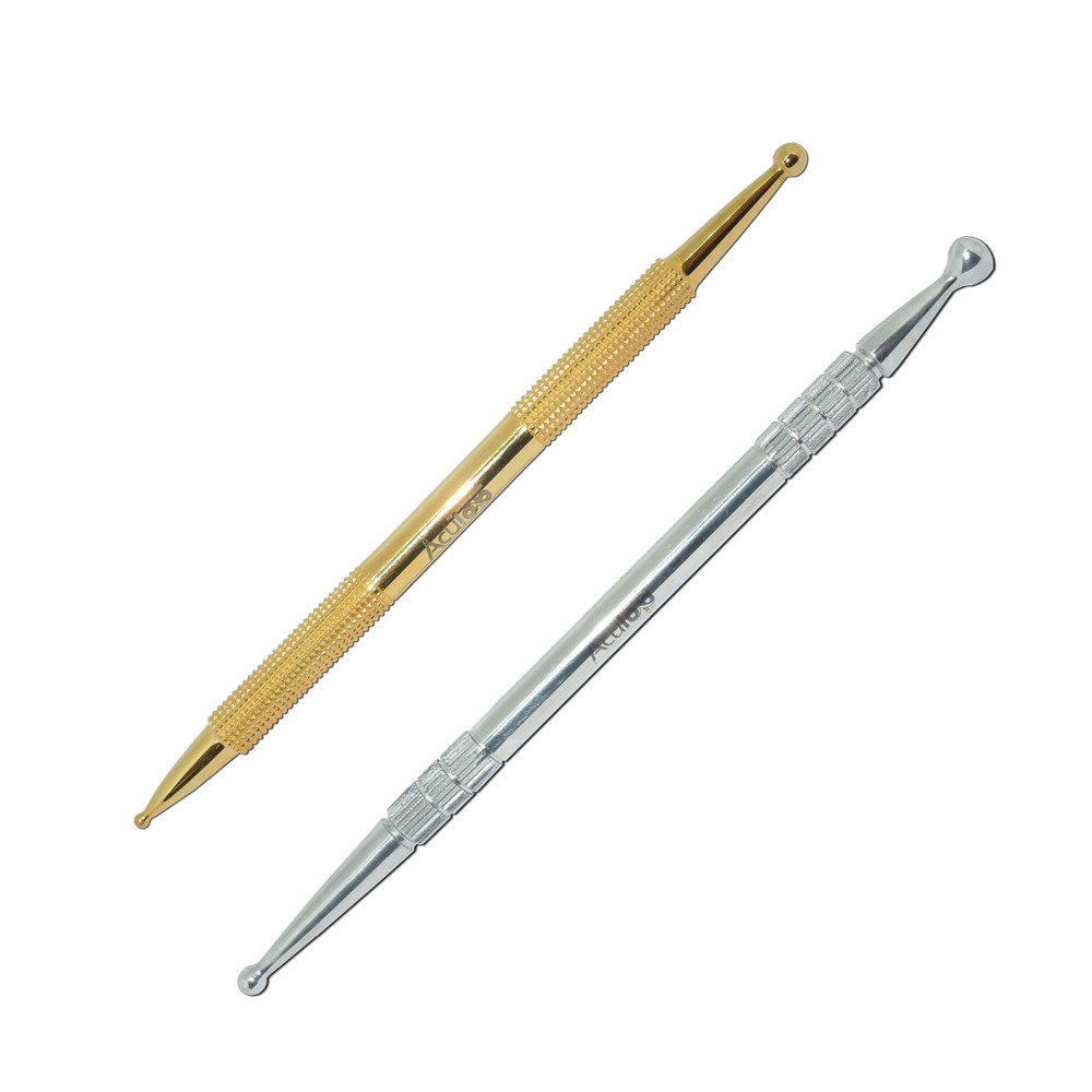 - 1 x Akupressurstift Vergoldet, 13 cm lang, Kugeldurchmesser: 2,5 mm und 4,5 mm