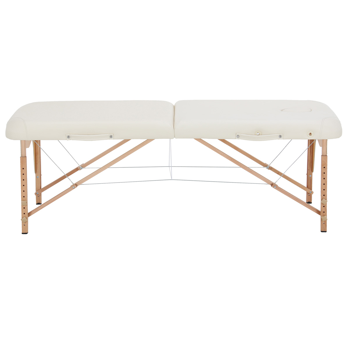 Die Höhe der Massageliege lässt sich mühelos mit Schraubknöpfen verstellen, wobei die Arbeitshöhe zwischen 59 cm und 82 cm variabel einstellbar ist.