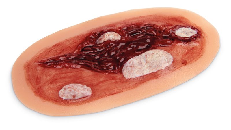 Dieses Moulagen-Kit umfasst eine hochgradig detaillierte Vielfalt an Erkrankungen, Druckwunden und Operationswunden, um die praktizierenden Ärzte/Pfleger bei dem Verständnis für die Behandlung und Versorgung ihrer Patienten zu unterstützen. Unabhängig davon, ob die Ausbildung des Anwenders die klinische Krankenpflege, Schulungen für zertifizierte PflegehelferInnen, Operationstechniken oder präklinische Disziplinen betrifft, es ist in jedem Fall vorteilhaft die Probleme zu visualisieren, die bei der Pflege dieser Wunden auftreten. Im Lieferumfang dieses Produktes ist ein Spritzbehälter mit übelriechendem Schweiß- und Erbrochenengeruch enthalten, der die Präsentation noch verbessert. Die Lieferung in einem stabilen Koffer ermöglicht eine mühelose Lagerung und einen einfachen Transport.