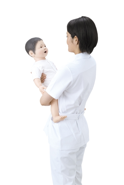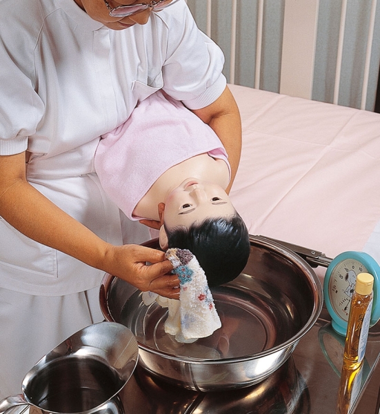 Weiblicher Säugling (6-8 Monate) zur Krankenpflegeausbildung. Dieses Modell wird aus einem Spezialkunststoff gefertigt, welcher ein außergewöhnlich natürliches Übungserlebnis ermöglicht. Die flexible, weiche Haut ist nahtlos geschlossen, so dass keine Flüssigkeit eindringen kann. Folgende Übungsmöglichkeiten bietet das Modell: richtiges Halten und Tragen, physiotherapeutische Übungen, Füttern, Stillen, Baden, Haare waschen, Messen, Wiegen, Vorsorgeuntersuchung, Fiebermessen, Blutdruckmessen, Legen einer Magensonde, Absaugen des Mund- und Nasenraums, Fixieren zur Blutentnahme oder zur Spinalanästhesie.