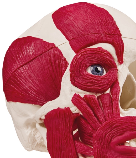 Die Muskeln des Kopfes sind detailreich und realistisch dargestellt, was dieses Modell zu einer ausgezeichneten Lehrhilfe für medizinische Ausbildungen und Anatomiekurse macht. Sie können die Funktion und Anordnung der wichtigsten Kopfmuskeln anschaulich studieren.