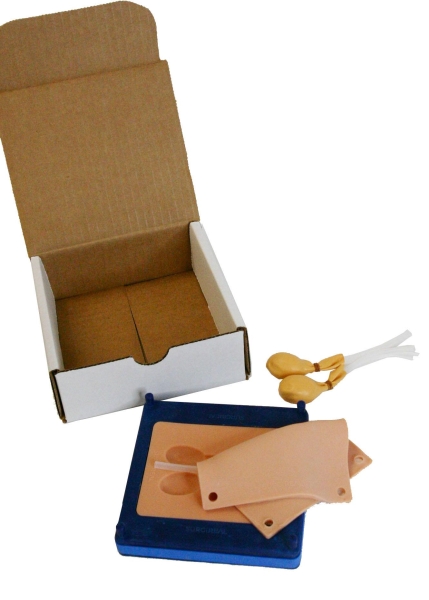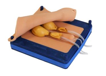Die Hoden des Modells sind besonders detailliert gestaltet, jeder mit zwei simulierten Gefäßen für den Samenleiter und die Gefäßversorgung. Eine Beutelschicht bedeckt die Hoden, um die tunica albuginea authentisch zu imitieren. Die wiederverwendbare Basis des Modells verfügt über eine erhöhte Kante, die den Penis für das Abtasten repräsentiert, sowie einen Schlauch, der die Harnröhre darstellt.