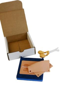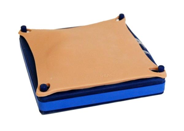 Mit Gleitgel bedeckt, können die Hoden für einen prä-skrotalen Zugang vorgeschoben werden. Nach dem Eingriff können sie entweder durch eine geschlossene oder offene Technik amputiert werden. Der Hautschnitt kann anschließend verschlossen werden, um den gesamten Kastrationsprozess realitätsnah zu simulieren.