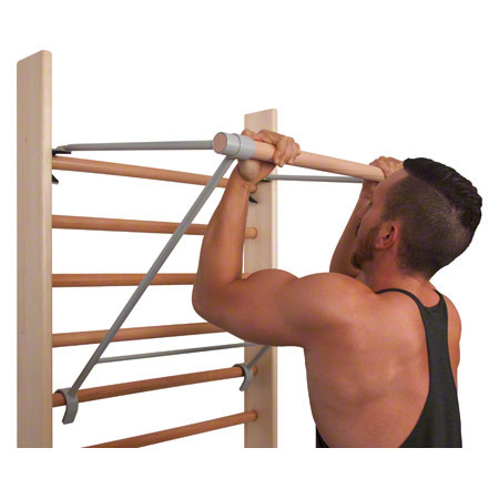 Dank seiner runden Sprossenform und des 3,5 cm Sprossendurchmessers eignet sich unser Klimmzugbügel auch perfekt für Dehn- und Streckübungen. Die stabile Metallkonstruktion und die Holzsprosse sorgen für eine langlebige und sichere Nutzung. Sie können den Klimmzugbügel einfach an einer Sprossenwand befestigen und er ist auch schnell wieder abgebaut.