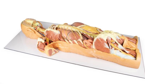 Entdecken Sie die einzigartige Welt der Anatomie mit unserem hochwertigen 3D-gedruckten Präparat! Dieses Modell bietet eine faszinierende Ansicht der axialen Anatomie, einschließlich einer tiefen dorsalen Präparation des Kopfes, Halses, Achselbereichs, Thorax, Abdomens und der Glutealregionen.