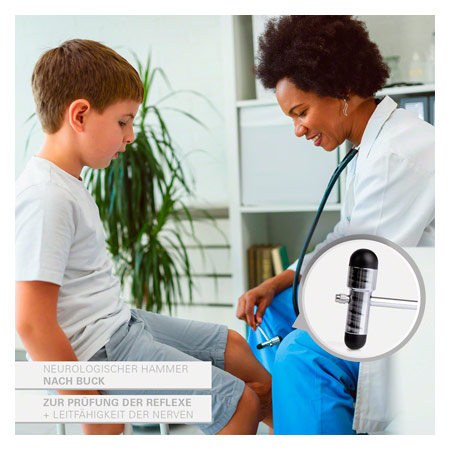 Der Reflexhammer nach Buck dient zur Prüfung von verschiedenen Reflexen und der Leitfähigkeit der Nerven.