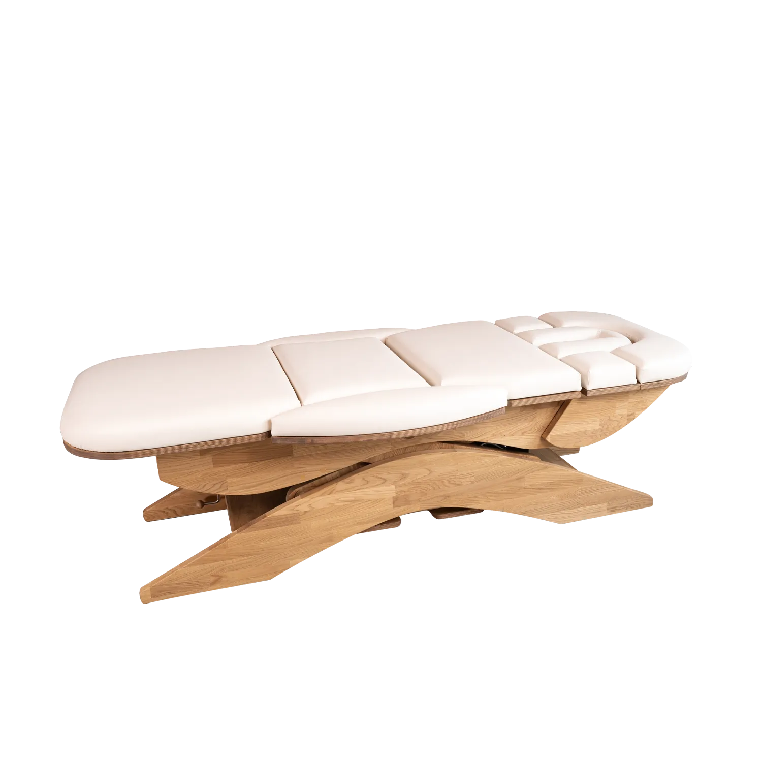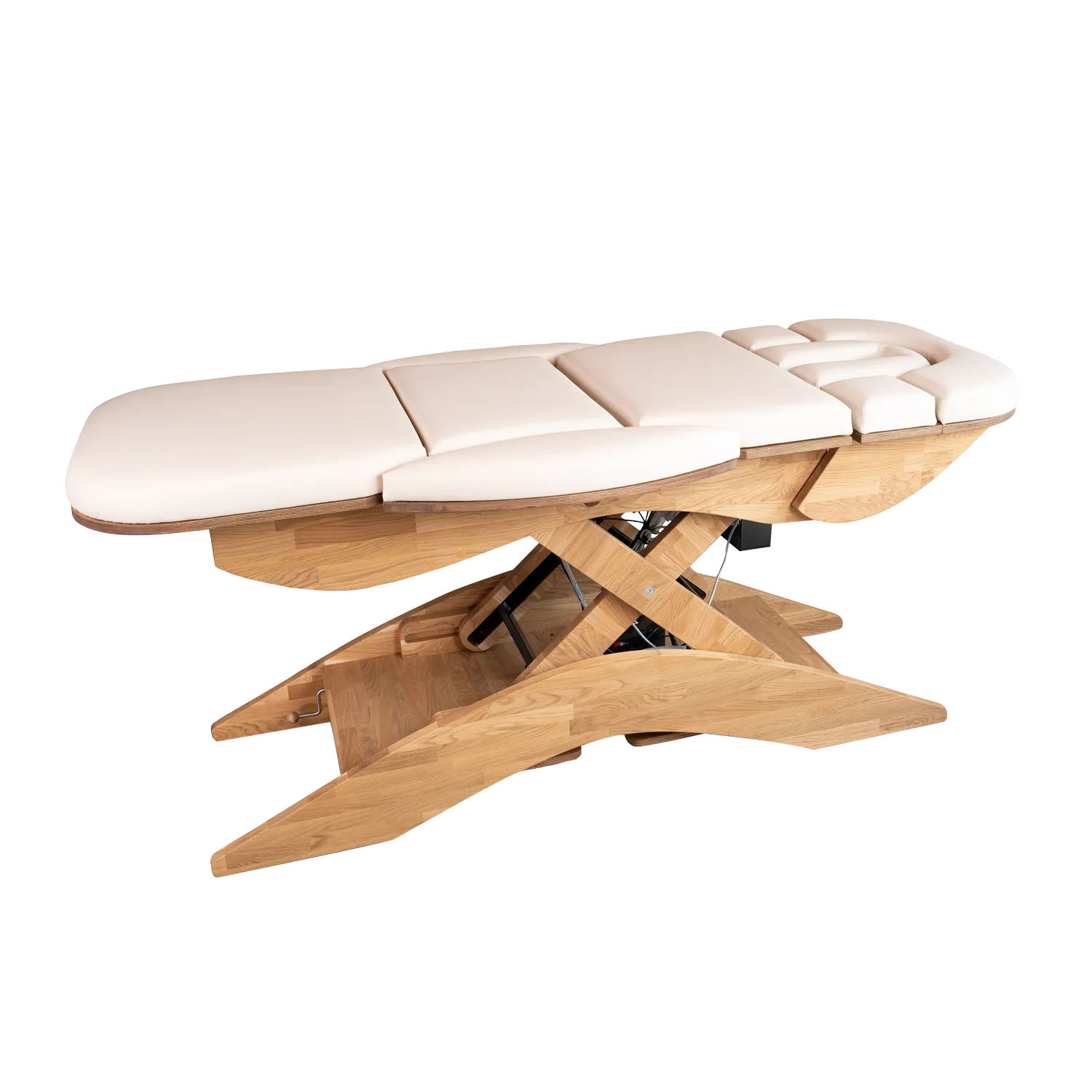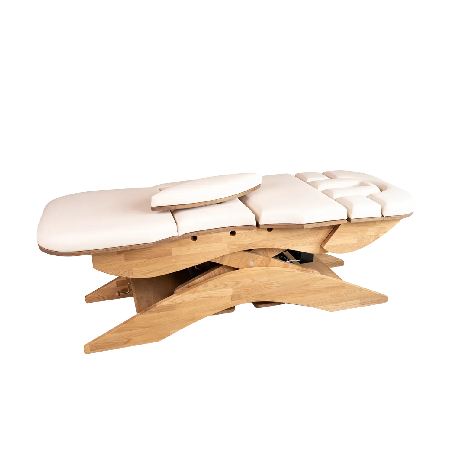 - Patentiertes Kopfteil mit absenkbarer Armablage: Für höchsten Komfort in der Bauchlage sorgt das patentierte Kopfteil mit integrierter, absenkbarer Armablage. Diese Konstruktion ermöglicht eine bequeme Positionierung der Arme und trägt zu einer entspannten Liegeerfahrung bei.