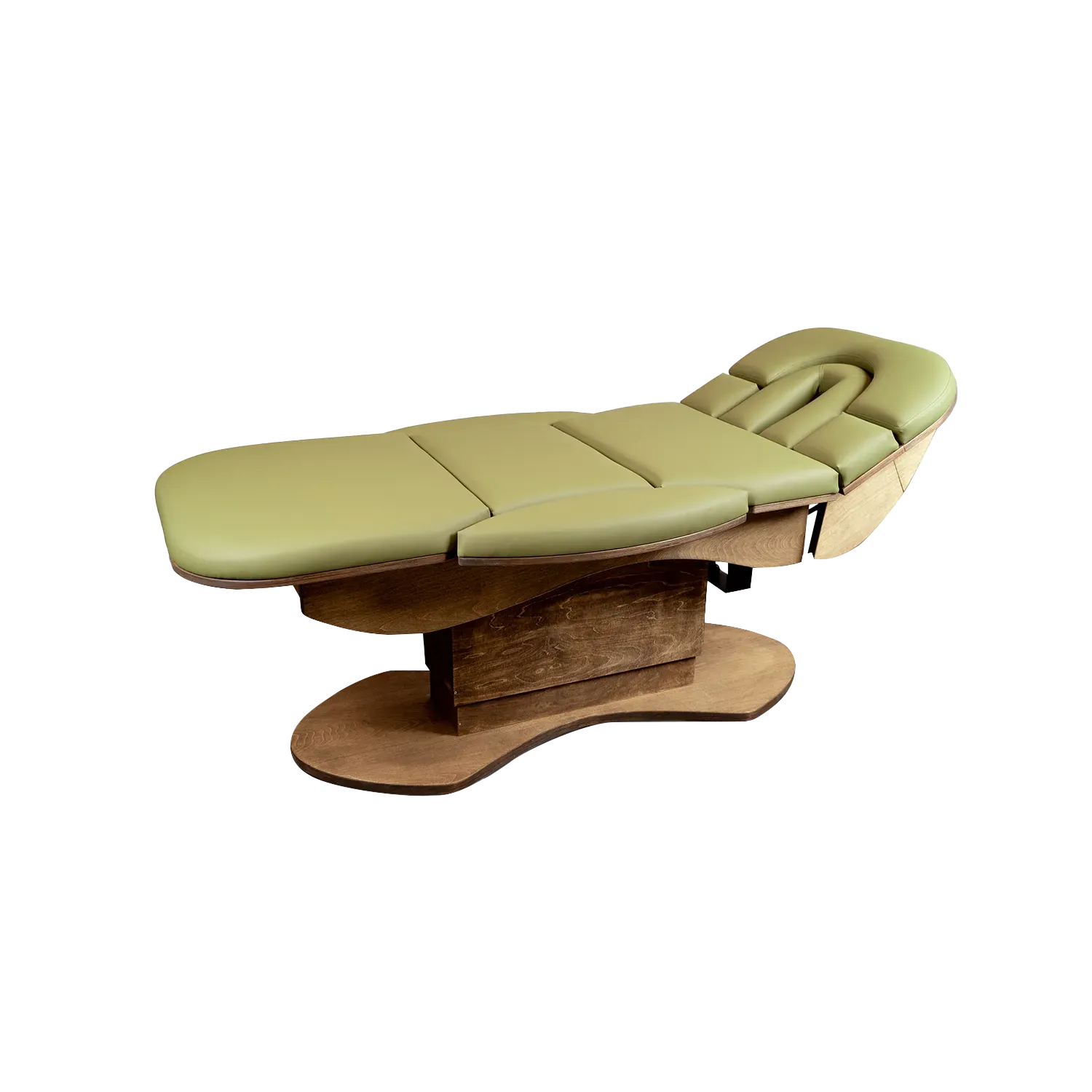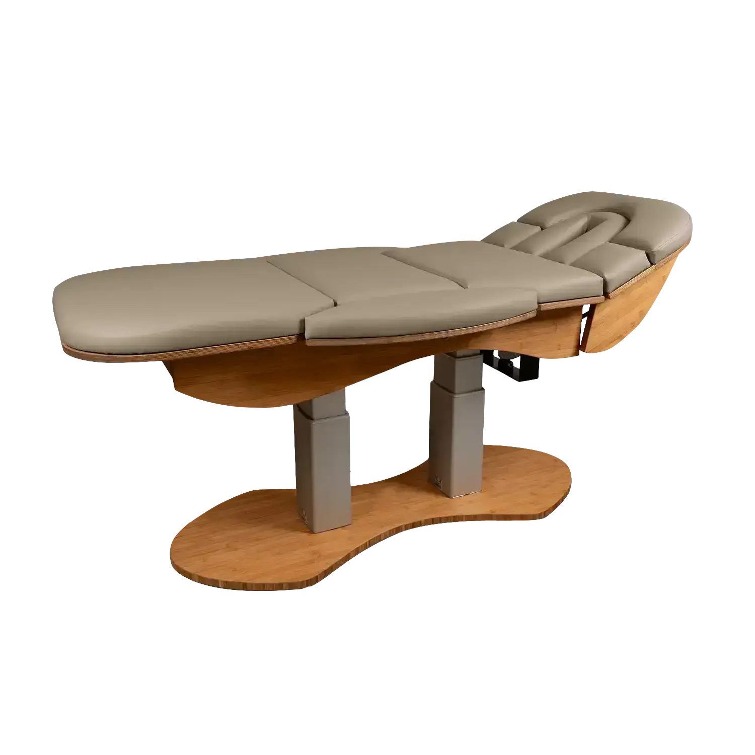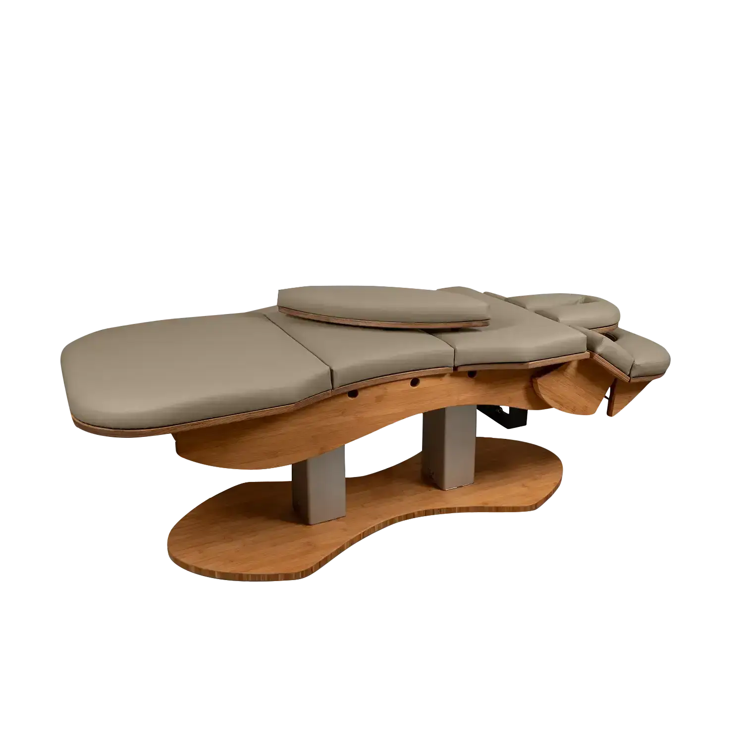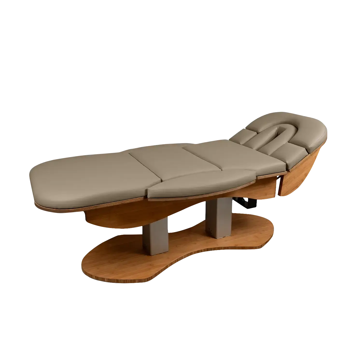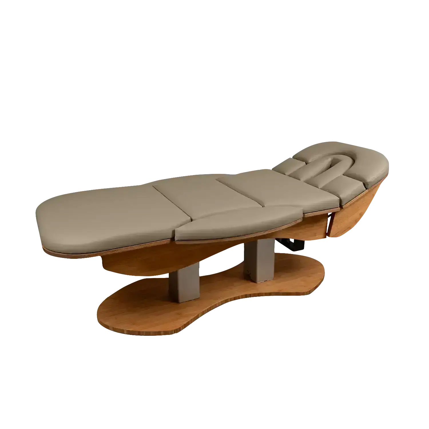 Das patentierte Kopfteil mit integrierter, absenkbarer Armablage bietet höchsten Komfort in der Bauchlage. Diese Konstruktion erlaubt eine bequeme Positionierung der Arme und trägt zu einer entspannten und angenehmen Liegeerfahrung bei, was besonders bei längeren Behandlungen von Vorteil ist.