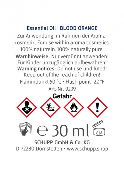 Hinweis zur Anwendung: Ätherische Öle sollten stets verdünnt angewendet werden. Vermeiden Sie direkten Kontakt mit den Augen und halten Sie das Produkt außerhalb der Reichweite von Kindern. Entdecken Sie die erfrischende Wirkung von SCHUPP Ätherischem Öl Blutorange und gönnen Sie sich und Ihren Gästen eine Auszeit vom Alltag.
