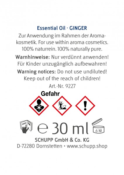 Entdecken Sie die aromatisch würzige und kräftige Wirkung unseres ätherischen Öls Ingwer. Dieses vielseitige Produkt entfaltet sein einzigartiges Aroma in verschiedenen Anwendungen wie Basisölen, neutralen Lotionen, Cremes oder Bädern. Es erfüllt den Raum mit einem intensiven Duft und kann sowohl über die Haut als auch die Atemwege aufgenommen werden.