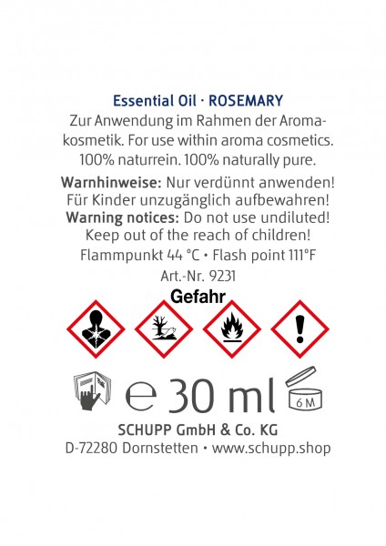 Hinweis zur Anwendung: Ätherische Öle sollten stets verdünnt angewendet werden. Vermeiden Sie direkten Kontakt mit den Augen und halten Sie das Produkt außerhalb der Reichweite von Kindern. Entdecken Sie die erfrischende Wirkung von SCHUPP Ätherischem Öl Rosmarin und gönnen Sie sich und Ihren Gästen eine Auszeit vom Alltag.